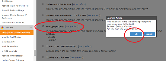 mod_pagespeed is Google’s answer to these problems. Based on my experience, most shared Web hosting packages do not include the mod_pagespeed module in their Apache configurations. Bluehost for example only offers it in their VPS packages and upwards. As a reseller however, you can make this functionality available to your clients out of the box and improve their page loading times as well as the strain on your own servers. Now that we’ve seen how to configure EasyApache, we don’t need to do a lot of manual work. We simply need to get the module to appear in easy Apache’s configuration screen.